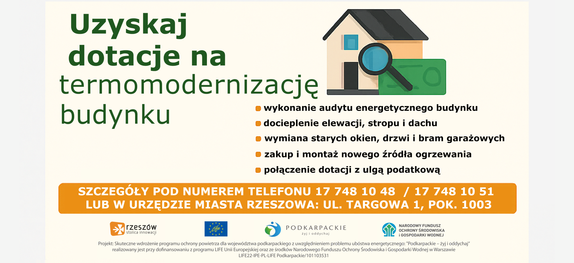 To kolejny element szerokiej kampanii informacyjnej w ramach realizacji projektu „LIFE Podkarpackie – Żyj i oddychaj”, której celem jest dotarcie do jak najliczniejszej grupy mieszkańców i podniesienie świadomości w zakresie korzyści, jakie niesie ze sobą kompleksowa termomodernizacja oraz zwiększenie efektywności energetycznej budynków mieszkalnych, wymiana przestarzałych źródeł ciepła, ograniczenie emisji zanieczyszczeń do atmosfery, a także poprawa jakości powietrza, jakim oddychamy na co dzień.