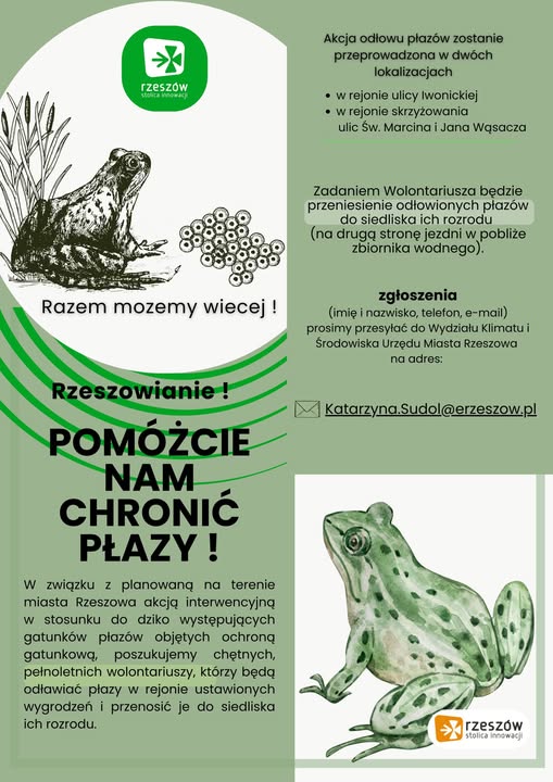 SZUKAMY WOLONTARIUSZY DO AKCJI PRZENOSZENIA ŻAB W RZESZOWIE!